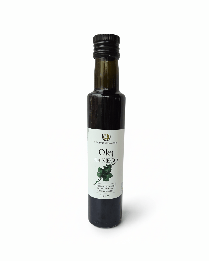 „Olej dla NIEGO” to kompozycja tłoczona w naszej Olejarni Uzdrowisko na zimno, w małych partiach, zawsze świeża i pełna naturalnych wartości. Każdy olej dobrany został tak, aby wzajemnie wzmacniały swoje działanie – od orzechowego, głębokiego smaku po realne działanie, które męski organizm odczuwa.