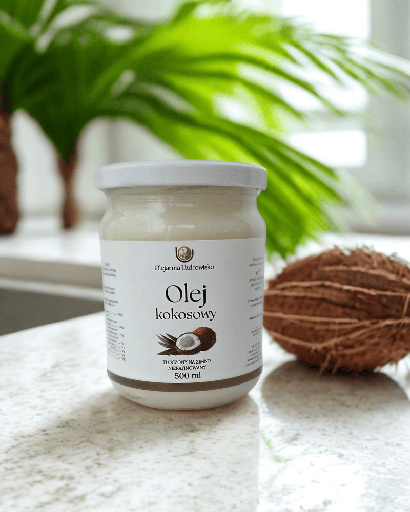 Olej kokosowy w naszej Olejarni Uzdrowisko powstaje z dojrzałych, świeżych kokosów, tłoczonych na zimno, w małych partiach. Dzięki temu zachowuje pełnię wartości odżywczych, naturalny aromat i kremową konsystencję charakterystyczną dla prawdziwego, nierafinowanego oleju kokosowego.