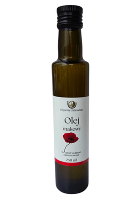 Polega to na mechanicznym wyciskaniu oleju w niewysokiej temperaturze (sprawdzanej termometrem w trakcie tłoczenia) dzięki czemu zachowane zostają cenne naturalne właściwości ziarna. Tłoczymy niewielkie ilości, dość regularnie. Świeżo wytłoczony olej kilka dni sedymentuje w szklanych słojach, aby siłą grawitacji osad opadł na dno. Czasem ten osad pojawia się również w butelkach z olejem, należy wtedy potrząsnąć butelką, aby cenny błonnik zmieszał się z warstwą płynną. Po kilkudniowej sedymentacji rozlewamy olej do szklanych, ciemnych butelek o pojemościach 100 ml, 250 ml oraz 500 ml i przetrzymujemy w lodówce.